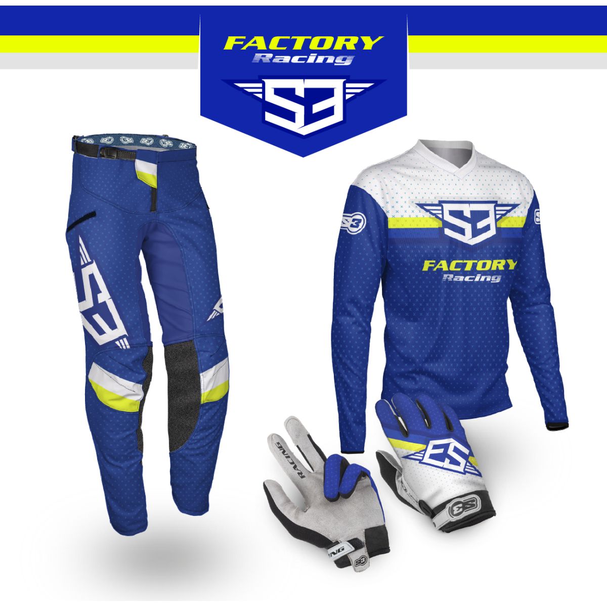 Equipacion S3 Parts Racing Colección Azul 2026. Pantalón Trial S3Parts FLEX en color Azul. Referencia: IG22-BLU. Ligereza, flexibilidad y confort al máximo nivel. Tejido técnico antibacteriano ultrasuave, cintura elástica ancha y rodilleras CE incluidas. Nuevo patrón optimizado para ofrecer libertad total de movimiento en conducción intensiva. Dos bolsillos amplios y funcionales. Fabricado 100% en Girona y Barcelona. Ideal para trial técnico. Camiseta S3 Parts Racing Collection Azul , Referencia: IG1-BLU. Pensada para Trial, Enduro, Motocross y Hard Enduro. Fabricada en poliéster multiperforado bi-elástico, con máxima transpiración, resistencia y libertad total de movimiento. Compatible con protecciones, colores vivos y cuello redondo cómodo. Ideal para entrenamientos y competición.