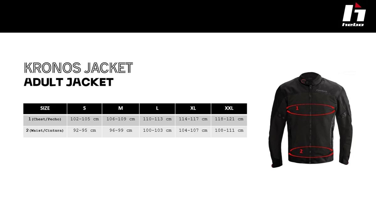 Giacca Moto Kronos Air City Nera Hebo. Giacca Hebo Kronos Air in nero HE4753N. Una giacca eccezionalmente resistente e leggera, progettata con proprietà impermeabili e traspiranti superiori. La giacca Hebo è realizzata in tessuto poliestere ad alta densità, materiale che rende questo capo più durevole e resistente. È un modello molto leggero, che dispone di una membrana impermeabile e traspirante, ideale per mantenere la temperatura corporea ed eliminare l'umidità. Dispone di una fodera termica removibile, che lo rende un capo molto versatile, con la possibilità di utilizzare la giacca con la fodera per i giorni più freddi dell'anno e senza fodera, per le giornate con temperature più elevate. Inoltre, questa giacca include anche protezioni removibili certificate CE su spalle e gomiti, e una tasca per il paraschiena. Giacca molto resistente e leggera. Con elevate proprietà di impermeabilità e traspirabilità.